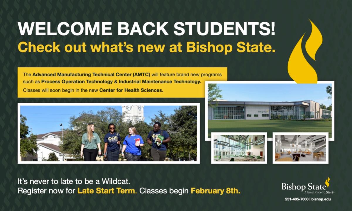 The spring semester is well on its way, and there is still time for you to get your start with Bishop State! Mini-Term 2 begins March 14th so register now for classes.