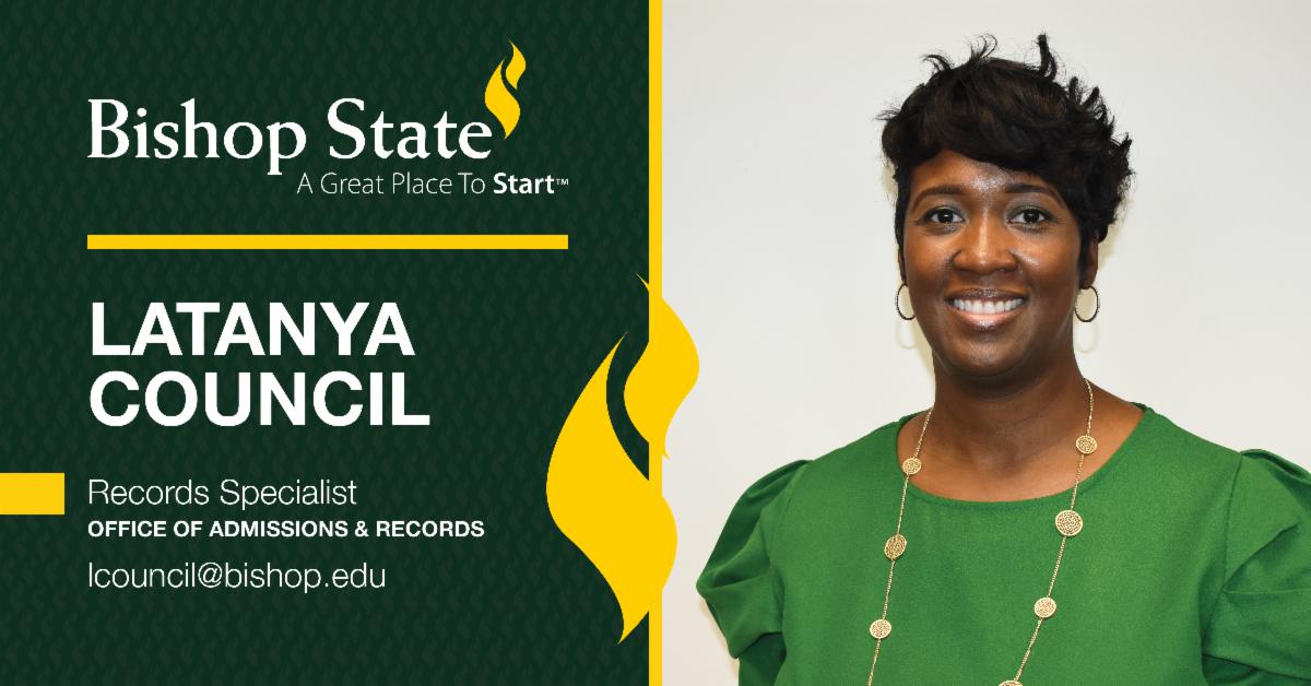 "What excites me most about working at Bishop State is the ability to help guide students in the pursuit of reaching their educational goals,' says Council. "I think having a servant's heart is vital; so, it warms my heart to be of service for our students."
