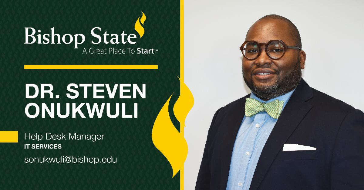 Dr. Steven Onukwuli is the new Help Desk Manager for the IT Sciences Department. He is a native of San Diego, California, and was last employed at Bishop State. Onukwuli earned a Bachelor of Art in Music - Vocal Performance from Stillman College, M.Ed Education in Higher Ed Student Affairs from Purdue Global University, and an Ed.D. Education - Leadership and Organizational Management - Higher Ed from Capella University. His professional accomplishments include being a board member of the HBCU Campaign Fund. His hobbies include traveling, writing, reading, and politics.