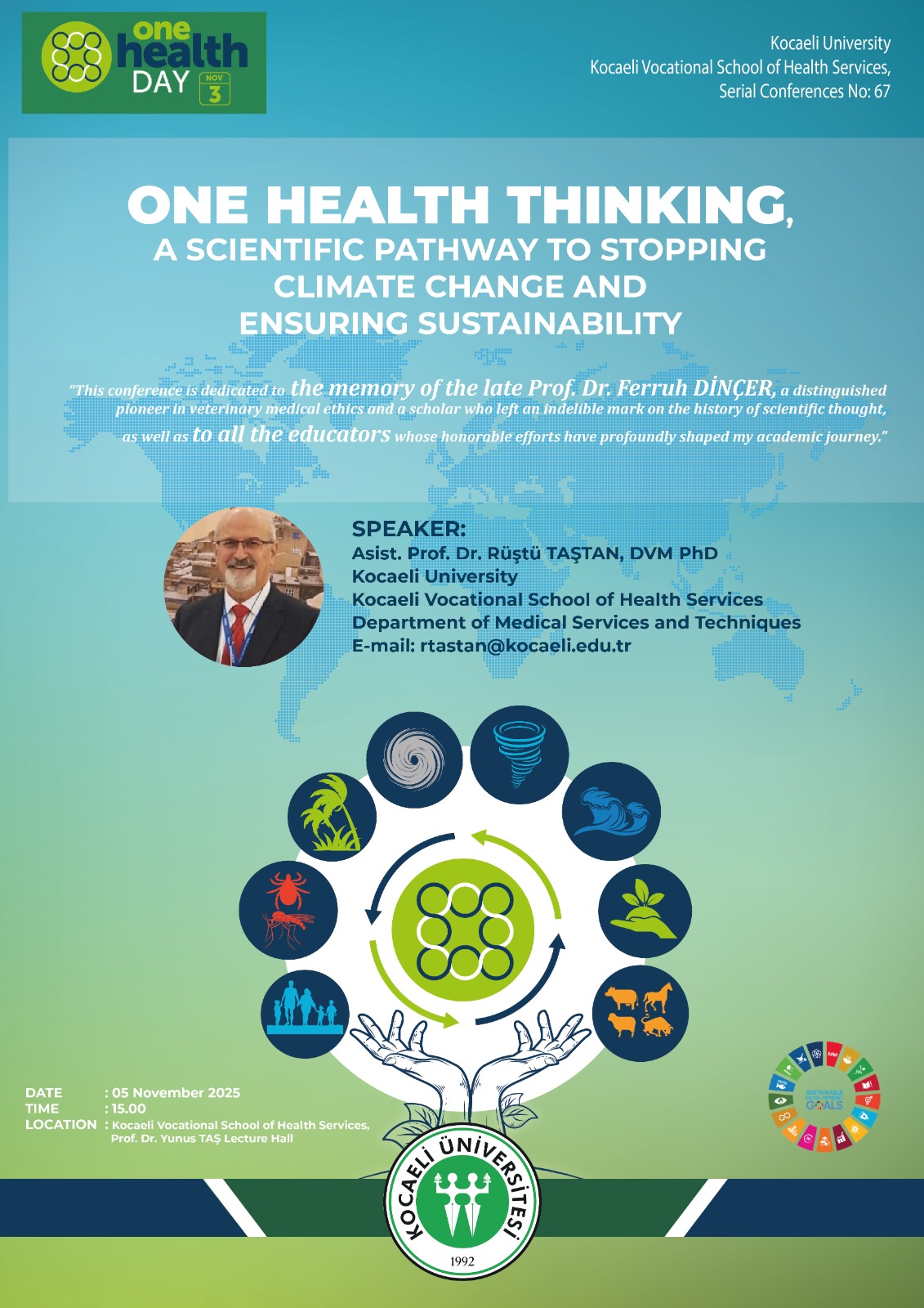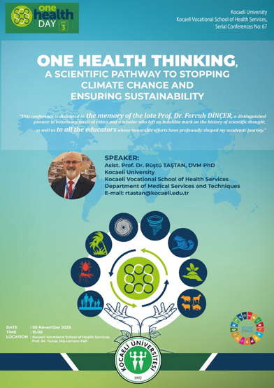 Kocaeli, Turkey. Conference hosted by Kocaeli University. Interdisciplinary scientific collaboration, which the medical profession has matured over nearly 200 years, has evolved into the "transdisciplinary thinking and sustainability" approach, indispensable to the 21st-century health paradigm. The purpose of this conference was to explain this process and to emphasize that One Health Thinking is the new paradigm beyond "zoonoses, emerging infections, and other microbial threats."