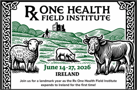 This year in Ireland co-led by faculty from the University of California, Davis School of Veterinary Medicine, and School of Medicine, and University College Dublin College of Health & Agricultural Sciences and UCD One Health Centre with support from the University of California Global Health Institute, Center for Planetary Health, and UCD Global. Through hands-on, practical learning experiences, case studies, group discussions, and field exercises, Rx One Health will teach you how to address complex challenges using the One Health approach, which recognizes that the health of people, animals, and their environments are interconnected. https://rxonehealth.vetmed.ucdavis.edu/about