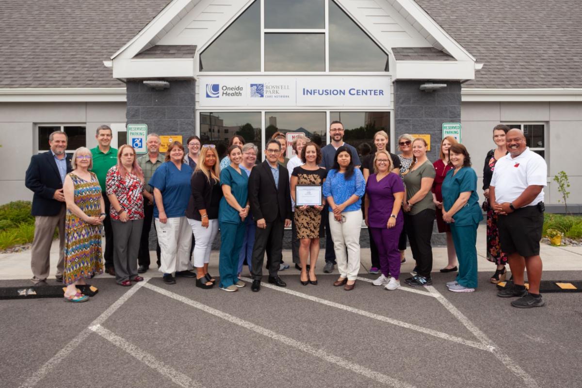 Back Row: Fred Agerter – Chamber Board, Dr. Matt Allen – Chamber Board from Allen Eye Associates, Wayne Kegley; Maggie Talarico RN; Diane Scatena; Katie Pagano; Deb Walz, AOCNP, WHNP-BC; Shaun Maroney, RT(T), MHA; Meghann Wright, RT(T), Rebecca Butka, Vanessa Rundle, MS, CMD, RT(T)(T); Kate Trombley