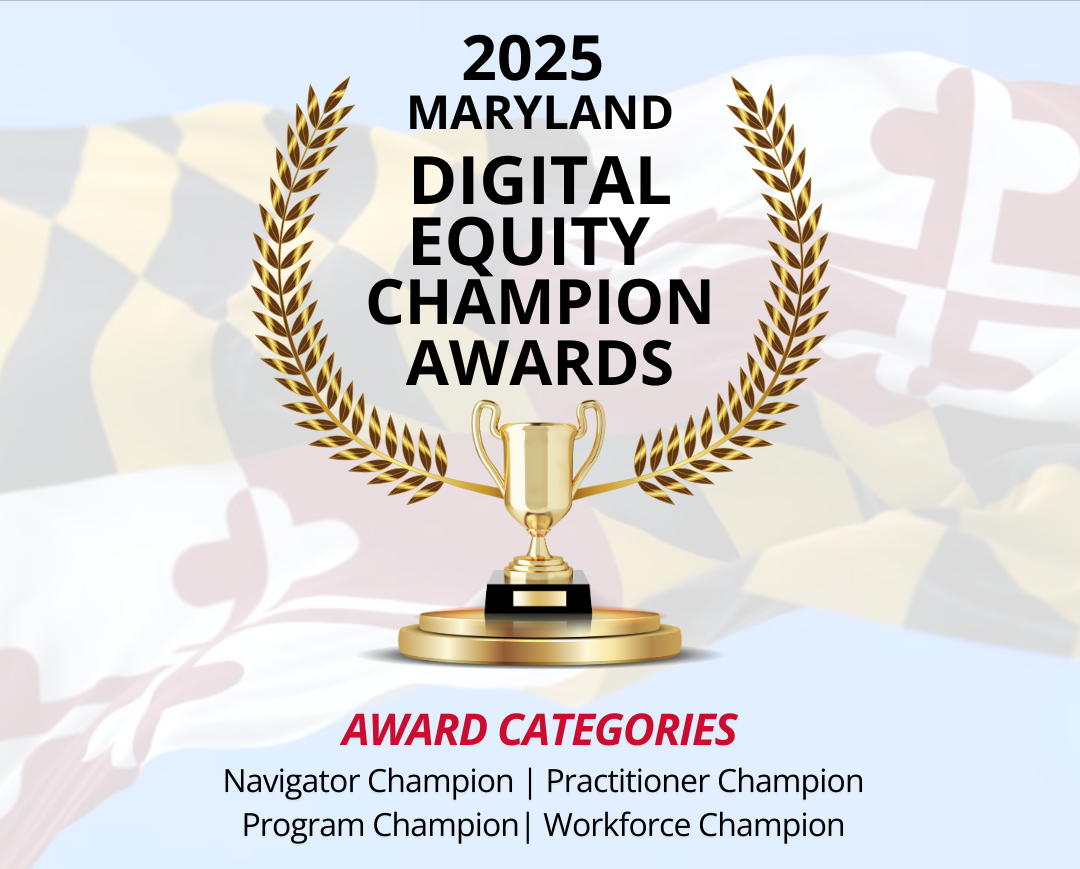 Recognize the outstanding work of Maryland’s digital equity champions in four categories: Navigator, Practitioner, Program, and Workforce. Three Digital Equity Champions and four Honorable Mentions will be recognized.