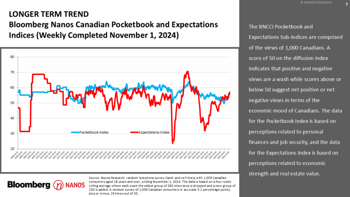 A random telephone survey of 1,039 consumers in Canada is accurate 3.1 percentage points, plus or minus, 19 times out of 20. This report is based on the four waves of tracking ending November 1, 2024.
