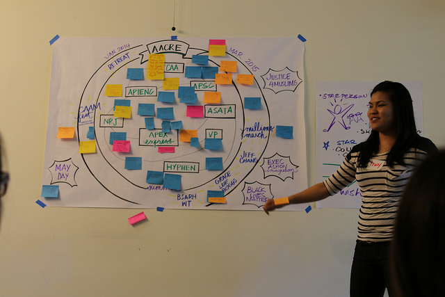 Tracy Nguyen, using graphic facilitation to chart a timeline of activities.