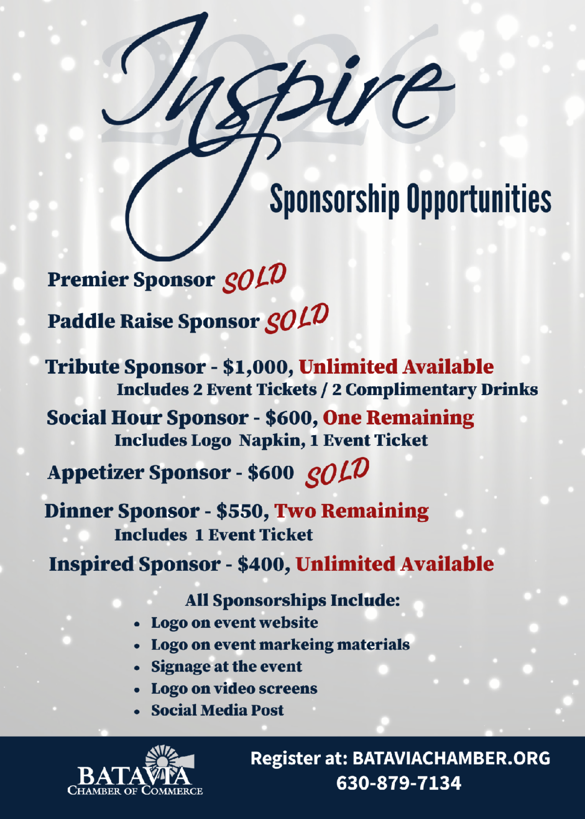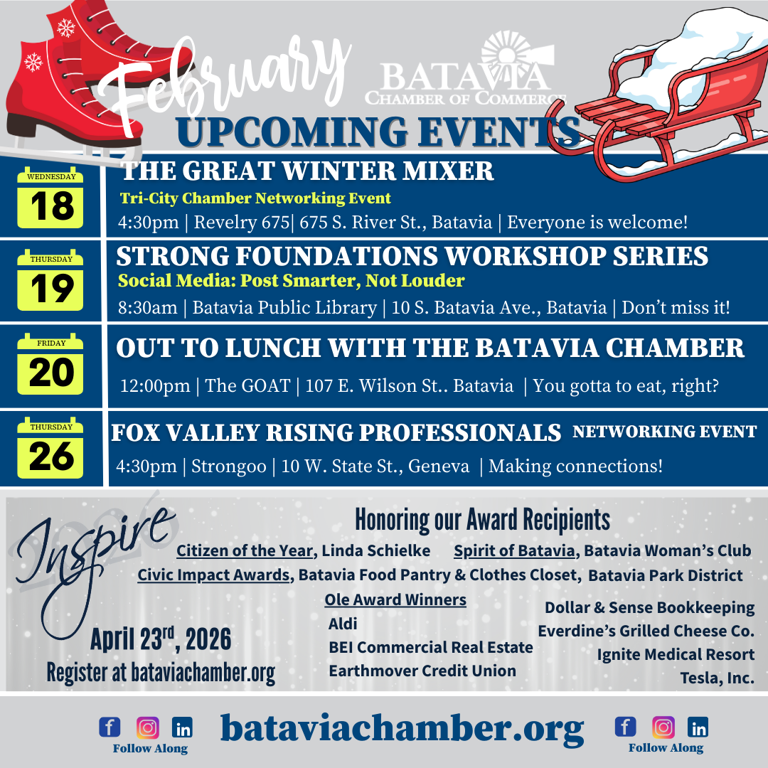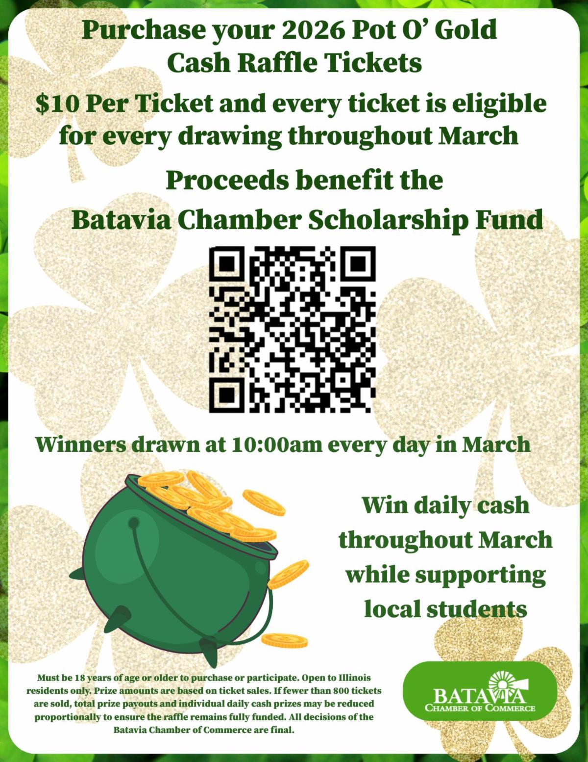 We're raising money for the Batavia Chamber Inspire Scholarship Fund and having a little fun along the way! Purchase raffle tickets for only $10 and be entered every day in March for your chance to WIN! More tickes = more chances to win!