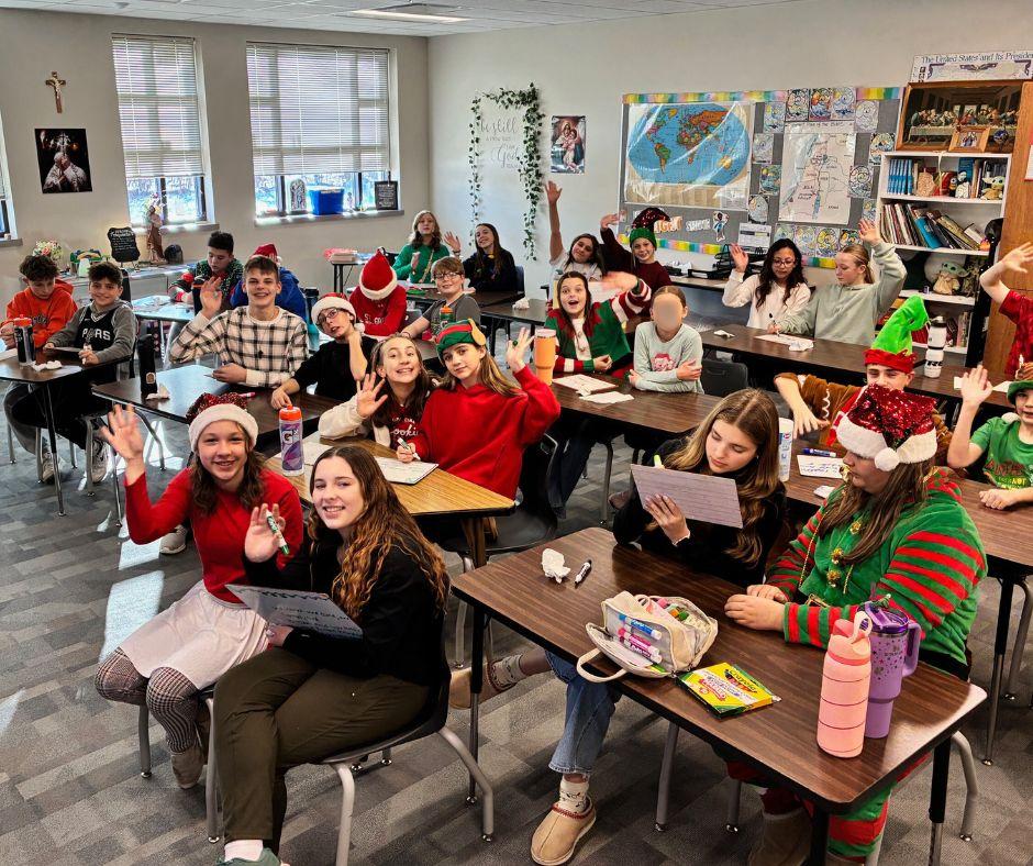 | | We nurture academic excellence while we Proclaim the Word, Form Disciples, Live a Sacramental Life | | A heartfelt thank you to our music and art teacher, Mrs. Wasserman, for a truly wonderful Christmas concert featuring songs from around the world. The students did an outstanding job, and their hard work and joy were evident in every performance. Thank you as well to all who attended and supported our students. And, a BIG thank you to Mr. Jilling and to ALL of the teachers who helped make this beloved tradition so special. It was a beautiful evening filled with song, music, and Christmas spirit. | | Our Spirit Groups enjoyed a meaningful Nativity Pilgrimage today, bringing the story of Christ’s birth to life throughout our school. The students began by creating their own nativity ornaments, then traveled together to several locations around the building, pausing at each stop to reflect on the journey to Bethlehem. | | | | |