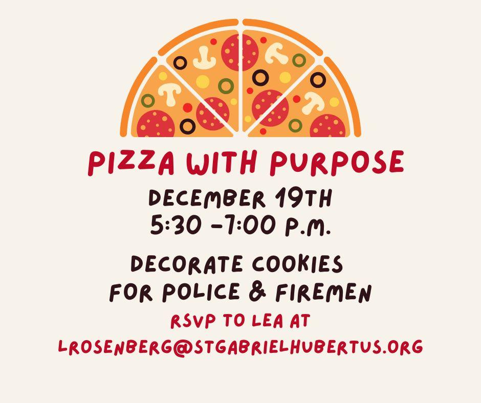 Sign up your child/ren for Pizza with Purpose TONIGHT by emailing Lea to let her know your child/ren will attend!