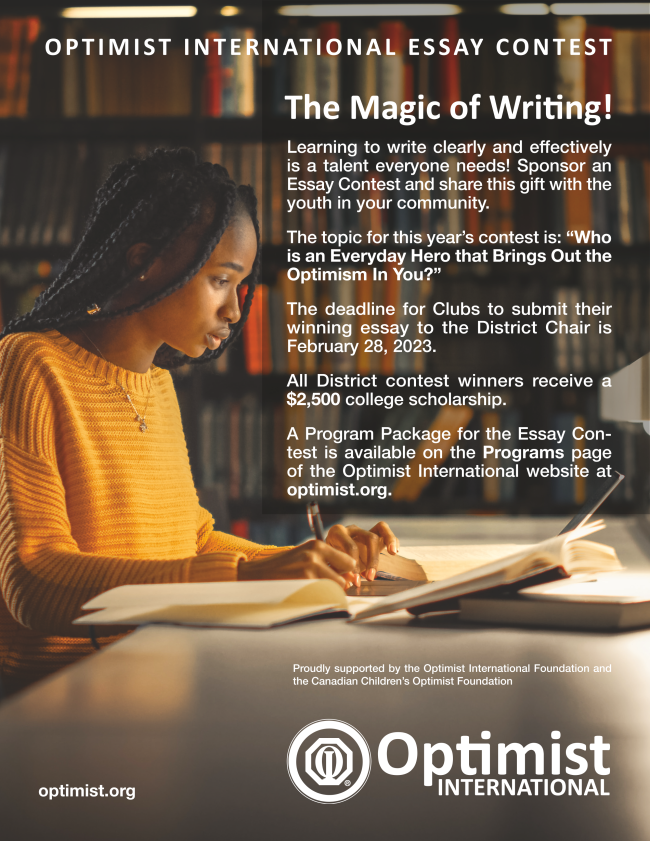 Our goal is to publish this newsletter monthly. Each will include downloadable images, website links, motivational stories and presentations you can use to promote Optimist International’s programs, activities and events to the Clubs and Members in your District – and to the public.