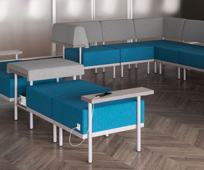 With a concise offering of single, corner, end, ottoman, and connecting tables and bridge units, Catwalk can be configured to approach from any angle and accommodate a variety of postures. Low and mid ledges are positioned perfectly for relaxed leaning, sitting, or perching. High ledges offer back comfort and privacy, while laminate or veneer ledges provide a space to get work done. Bridges break up the traditional seating with either a table or padded ledge yet maintain continuity and offer storage. Catwalk invites users to kick their feet up and spread out.
