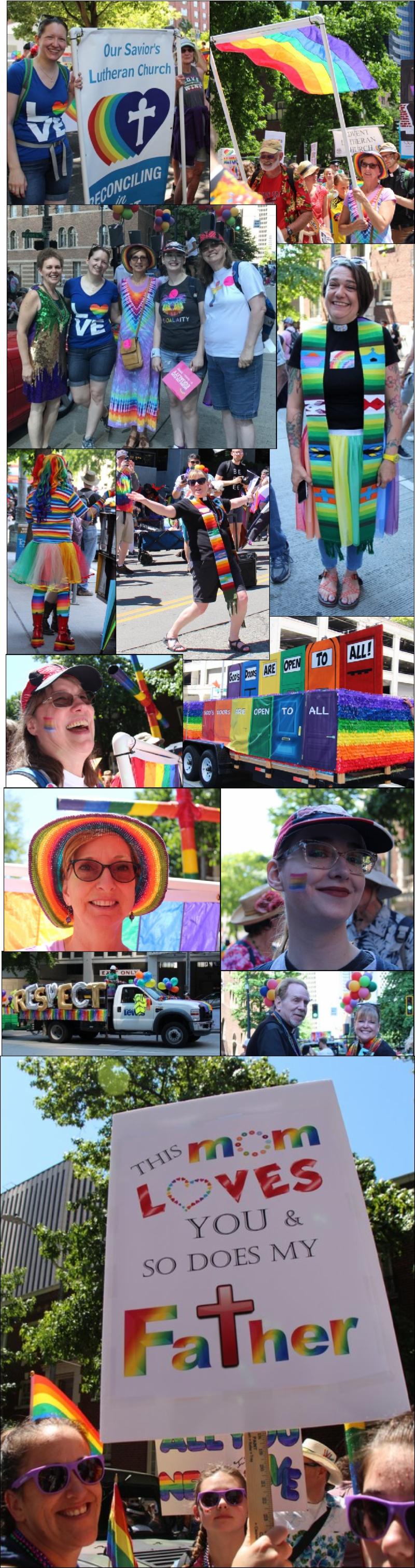 Ten people from our community at Our Savior's braved traffic, crowds, heat and sore feet to march miles in the Seattle Pride Parade along with Bishop Elect Shelley Bryan Wee, Open Door Ministries. and Lutherans from 30 other churches in the NW Washington Synod. We marched to witness God's love for us all and to show our own love and welcome to our LGBTQ+ sisters and brothers.