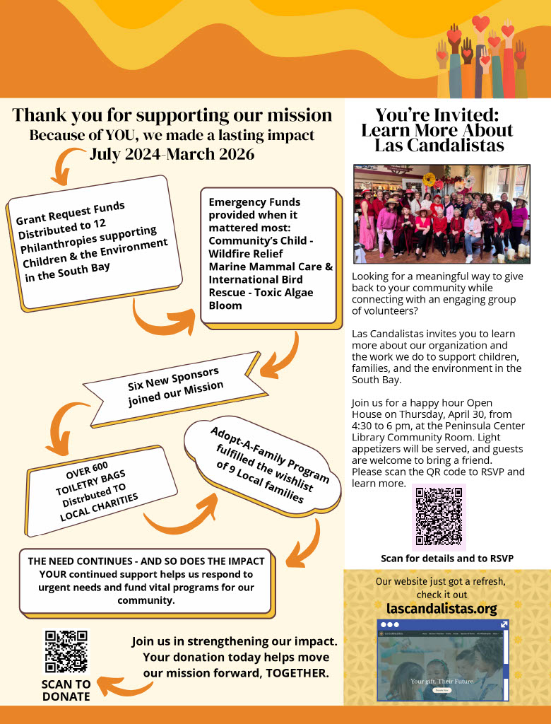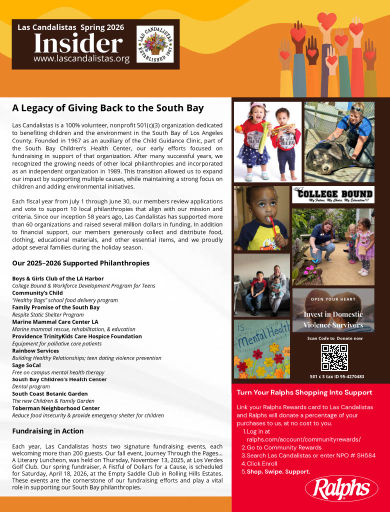Las Candalistas is a 100% volunteer non-profit 501 (c) (3) organization dedicated to benefiting children and the environment in the South Bay of Los Angeles County.