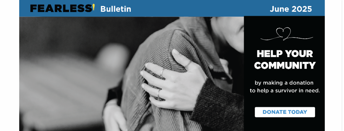 | | As we head into the second half of the year, we're reminded that being Fearless! is about showing up, again and again, for survivors, for youth, for change. We thank you for standing beside us, whether you're wearing our message, speaking out to legislators, or supporting our work behind the scenes, you are part of this movement. Stay connected, stay loud, and most importantly, stay fearless. | | |