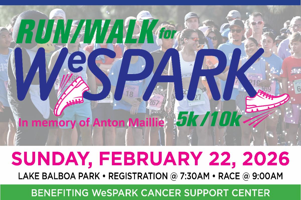 | | Registration is NOW OPEN for Run/Walk for WeSPARK 5K/10K! Join us on Sunday, February 22, 2026, at Woodley Park in Lake Balboa. Gather your family and friends for a day with a Kids Fun Run, Vendor Expo, Music, Raffle, and more. Let’s get moving to support cancer patients, survivors, and their loved ones! SIGN UP at https://runsignup.com/Race/CA/VanNuys/RunWalkforWeSPARK | | | | |