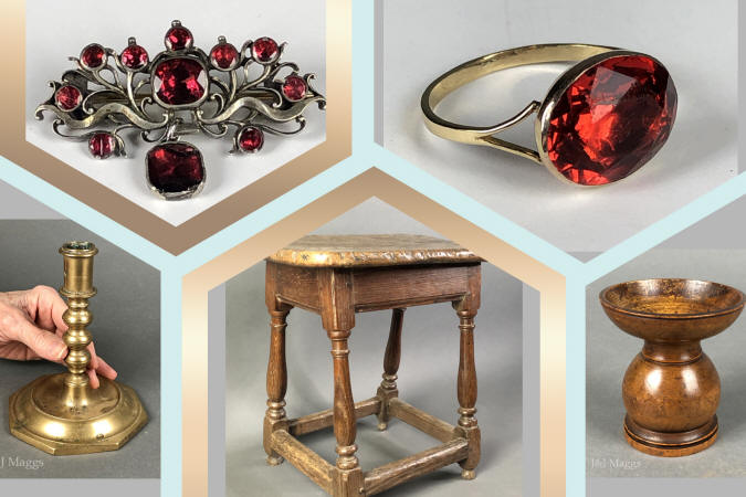 This month we're listing several early smalls and jewelry pieces, early oak, and a large Turkoman carpet. Click the collage to view them all.
