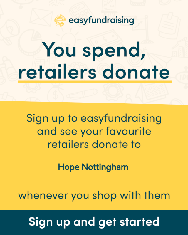 Whether it's your regular weekly shop, one off items or annual purchases such as insurance or holidays, Hope Nottingham can benefit from retailers donating each time you spend online. To find out more about how it works, visit the easyfundrasing website.