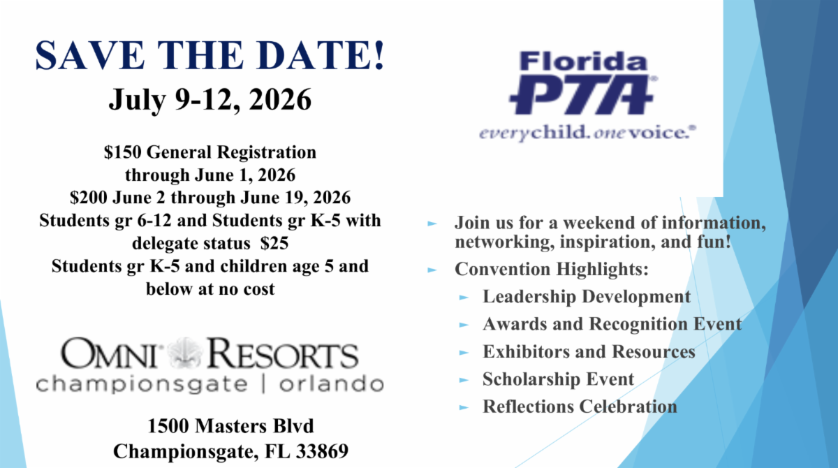 We are excited to invite you to join us for the Florida PTA 2026 Legislative Conference! This annual event is an important opportunity for our members to come together, learn, and advocate for every child.