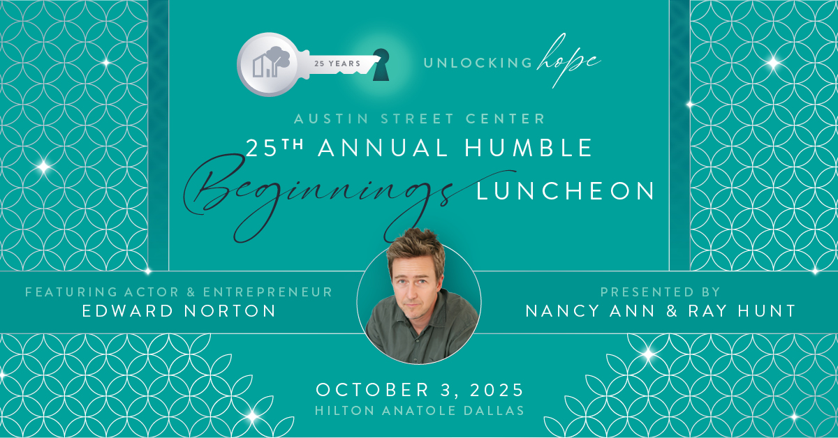 We hope you will consider supporting us in this critical work by making a gift now through Thursday, September 18 for North Texas Giving Day—or by attending our 25th Annual Humble Beginnings Luncheon on Friday, October 3.