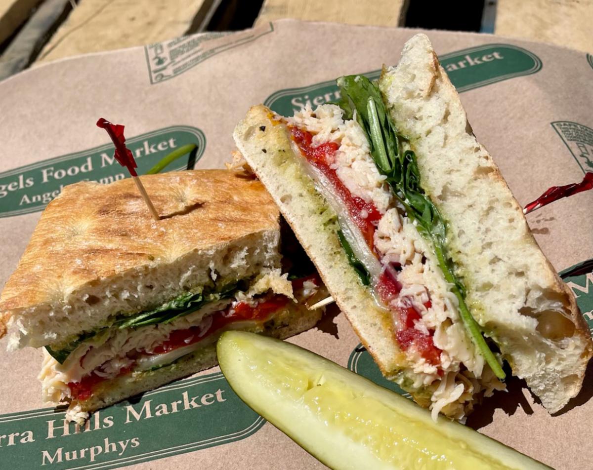 Oven Roasted Chicken with Provolone Cheese, Roasted Red Peppers & Marinated Tomatoes, Sliced Red Onions, Fresh Spinach & House Made Pesto Mayonnaise Grilled on Focaccia Bread.