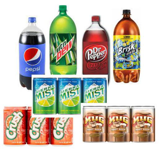 Pepsi, Mt. Dew, Dr. Pepper, Crush, Mist, Mug & Lipton
