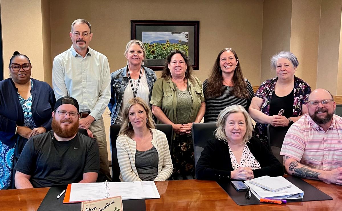 Spring graduates are (seated from left) Corey Holland of HIGHTS; Allison Greenfield, a recent graduate of Western Carolina University; Mary Jane Lucas of Circles of Cashiers-Glenville; and T.J. Smith of International Friendship Center. Standing (from left) are Gretta Worley of HERE in Jackson County; Dr. Frederick Buskey, our N+N facilitator; Randi Neff of Southwestern Community College; Sabrena Davis of Jackson County Department of Social Services; Nicole Hinebaugh of MountainWise; and Toni Pasquariello of Legal Aid.