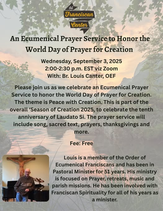 The Franciscan Center is hosting an ecumenical prayer service to honor the World Day of Prayer for Creation.