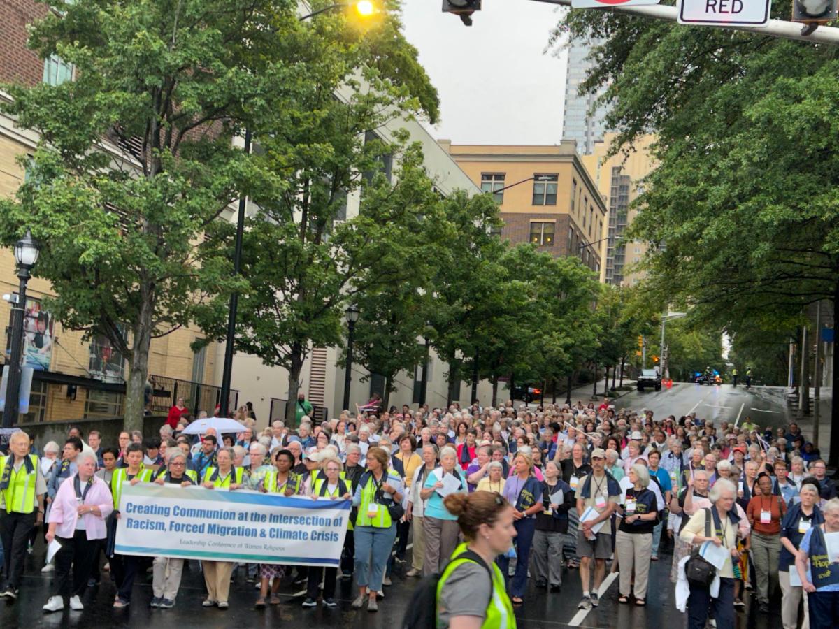 Hundreds of sisters who attended the Leadership Conference of Women Religious event walked through downtown Atlanta on August 14 to pray for social and environmental justice.