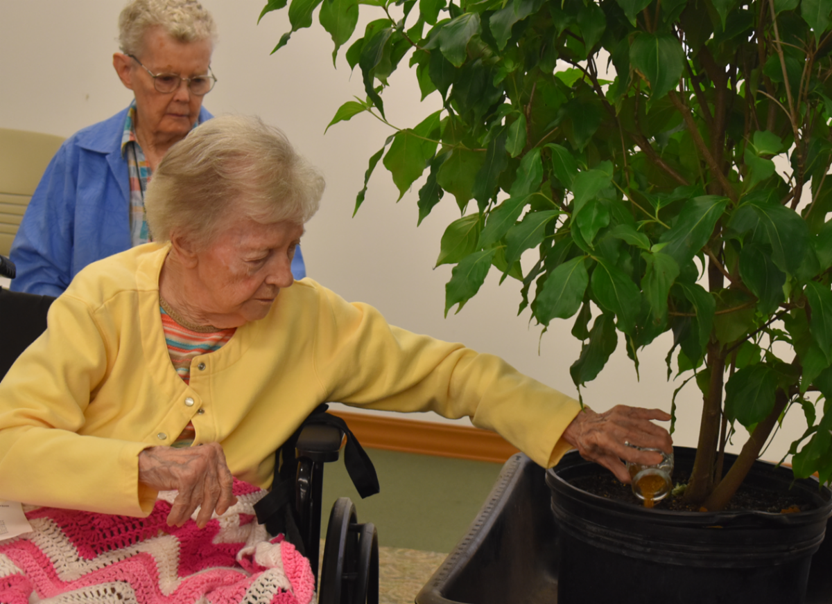 The Sisters who attended a recent celebration at Our Lady of Lourdes in New Jersey were each given a small container of soil from the hospital. During the Motherhouse ritual, some of that soil was added to the tree's soil.
