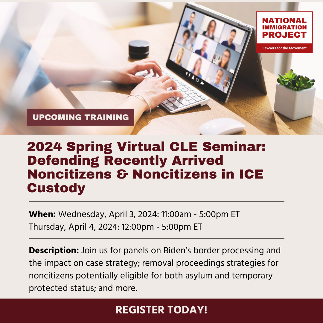 2024 Spring Virtual CLE Seminar: Defending Recently Arrived Noncitizens & Noncitizens in ICE Custody