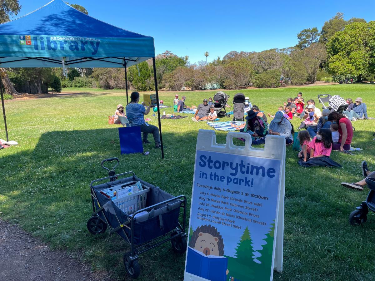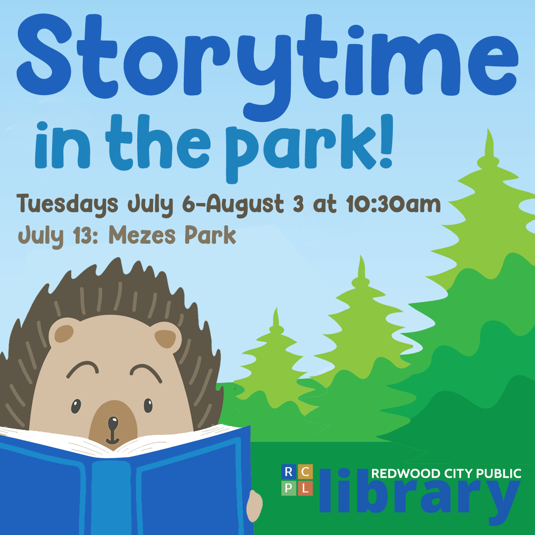 Join us on July 13 in Mezes Park for a fun storytime outside. Follow along as our storytimes travel to different Redwood City parks.