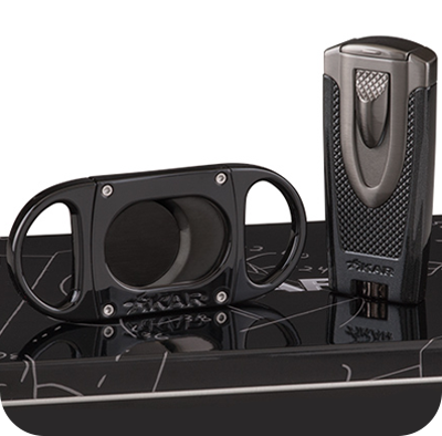 Includes an Axia double jet flame lighter and an X8 cutter.