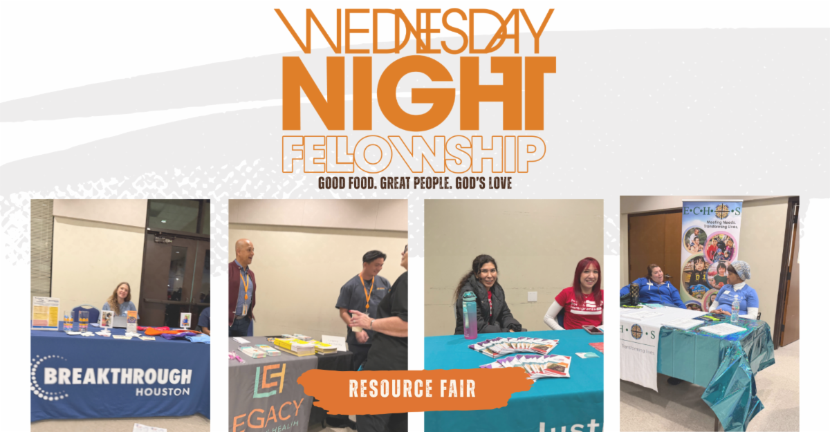 Weeknight: Wednesday Night Fellowship I Sign up or give here! Cook, serve, and/or give to Wednesday Night Fellowship, our community dinner for the Gulfton/Sharpstown neighborhood.