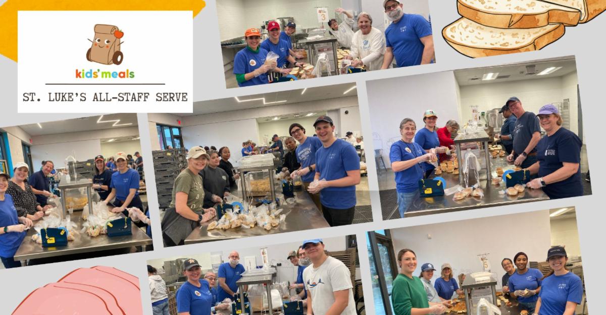 More than 50 staff members cleared their schedules on a Wednesday in January to serve at Kids' Meals brand new 55,000 sq. ft. facility. Together we made over 5,900 sandwiches and 5,400 snack bags. What a great day! Each year St. Luke's makes over 27,500 sandwiches for Kids' Meals!