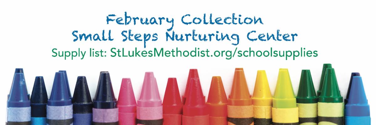 This month, St. Luke's is collecting school supplies for the Small Steps Nurturing Center students. Supplies donated will set up graduating Pre-K children for success and will keep younger students sharp over the summer months. Drop needed supplies in the donations bin located in the Gathering Room. View items needed or order online here.