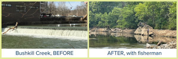 Kristie Fach, director of ecological restoration, says, “Removing this next series of dams to open these two miles for fish passage will help reconnect the Bushkill to the Delaware and onto the Atlantic Ocean for the first time in a century.”
