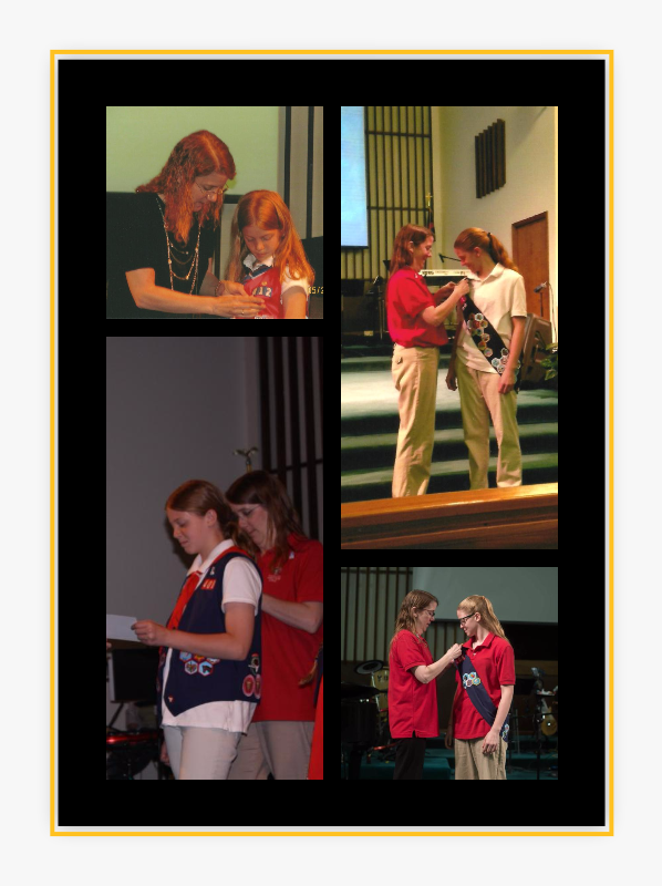 Alyssa H. brought her Four Star journey to a close when she received her God and Life award in May 2017. Her six-year journey started in 2011 with the God and Me award, and included stopovers for God and Family in 2013 and God and Church in 2016 (see photo collage). Alyssa belongs to AHG Troop MI0408 and is a member of First Baptist Church in Charlotte, MI. She was asked to look back on her journey and share her thoughts. Here’s what she had to say: