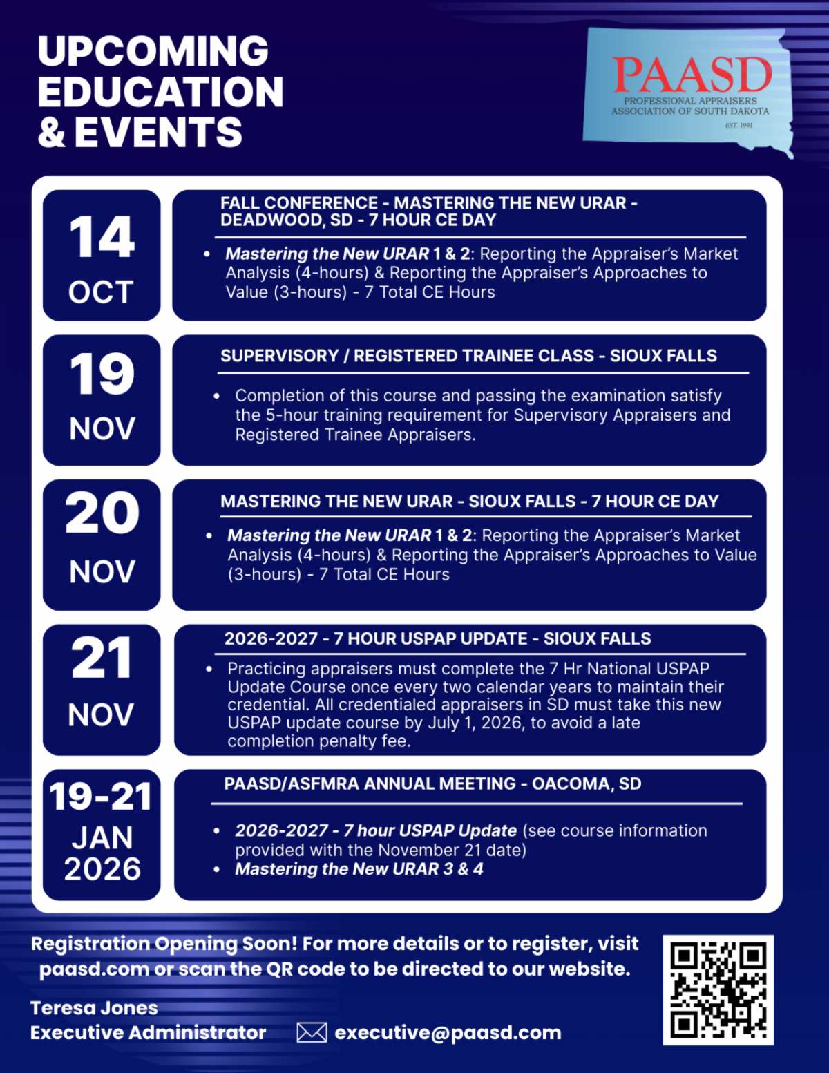 If you have any issues with registering, please contact me at 605-391-3668 or executive@paasd.com