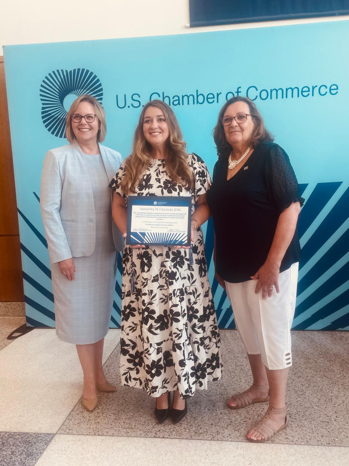 Institute for Organization Management, the professional development program of the U.S. Chamber of Commerce, is pleased to announce that Samantha Chivinski, IOM, executive vice president, of the Schuylkill Chamber of Commerce, has graduated from the program and has received the recognition of IOM. Click here for the full press release.