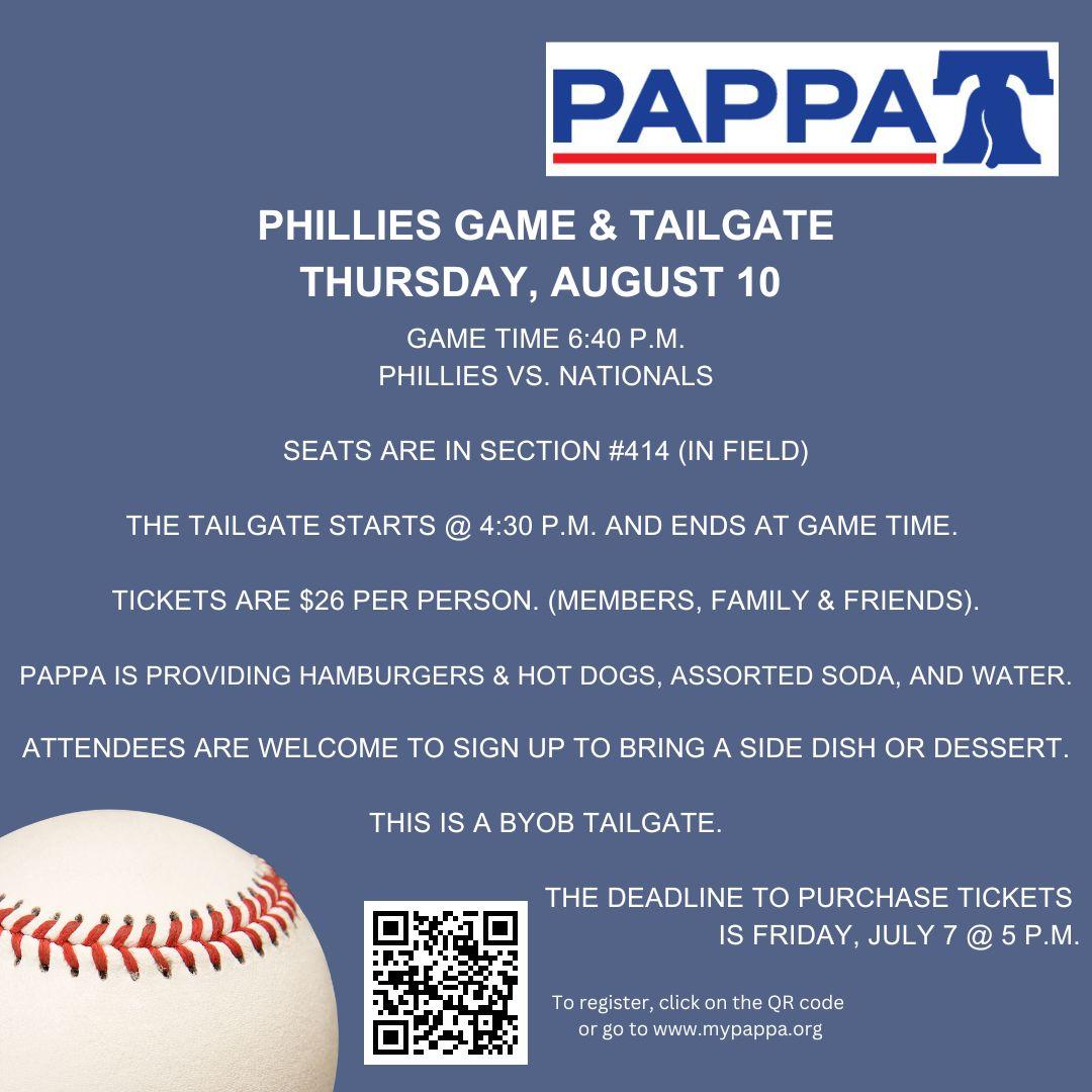 August 10 - PAPPA Phillies Game & Tailgate.
