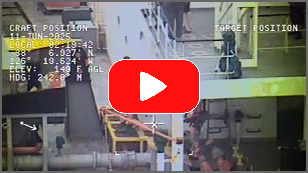 | | U.S. Air Force Airmen from the 129th Rescue Wing, California Air National Guard, conduct an over water rescue of a Filipino mariner who suffered a stroke-like symptoms onboard a cargo vessel, 700nm off the California coast, September 19, 2025. The unit executed the deep-water mission, providing rescue capability and strengthening U.S. - Philippine partnership through action. | | |