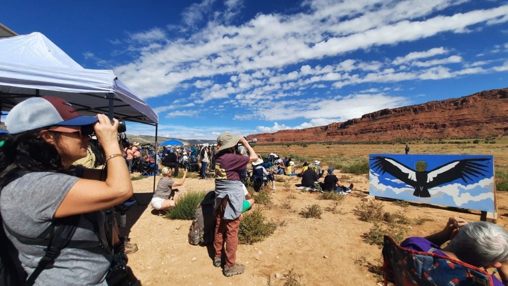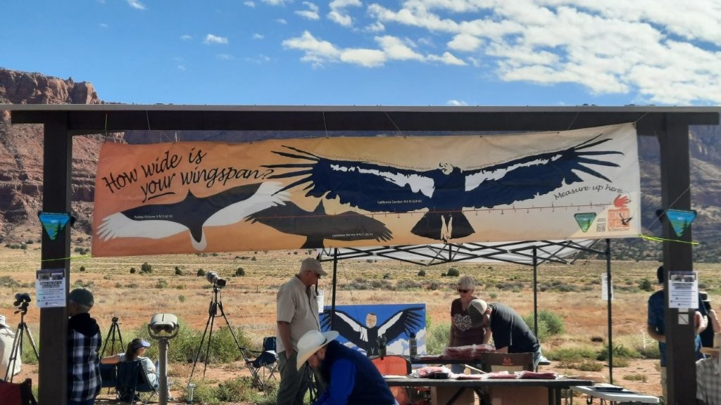 On a gorgeous day, September 27, 2025, one of my bucket list items was realized. I attended the 29th annual California Condor Release at the Vermilion Cliffs National Monument in northern Arizona on National Public Lands Day. Peregrine Fund, one of the hosts running the event, estimated that 600 people gathered that day. Various groups involved in condor conservation had tables with information, and many people had spotting scopes to share.