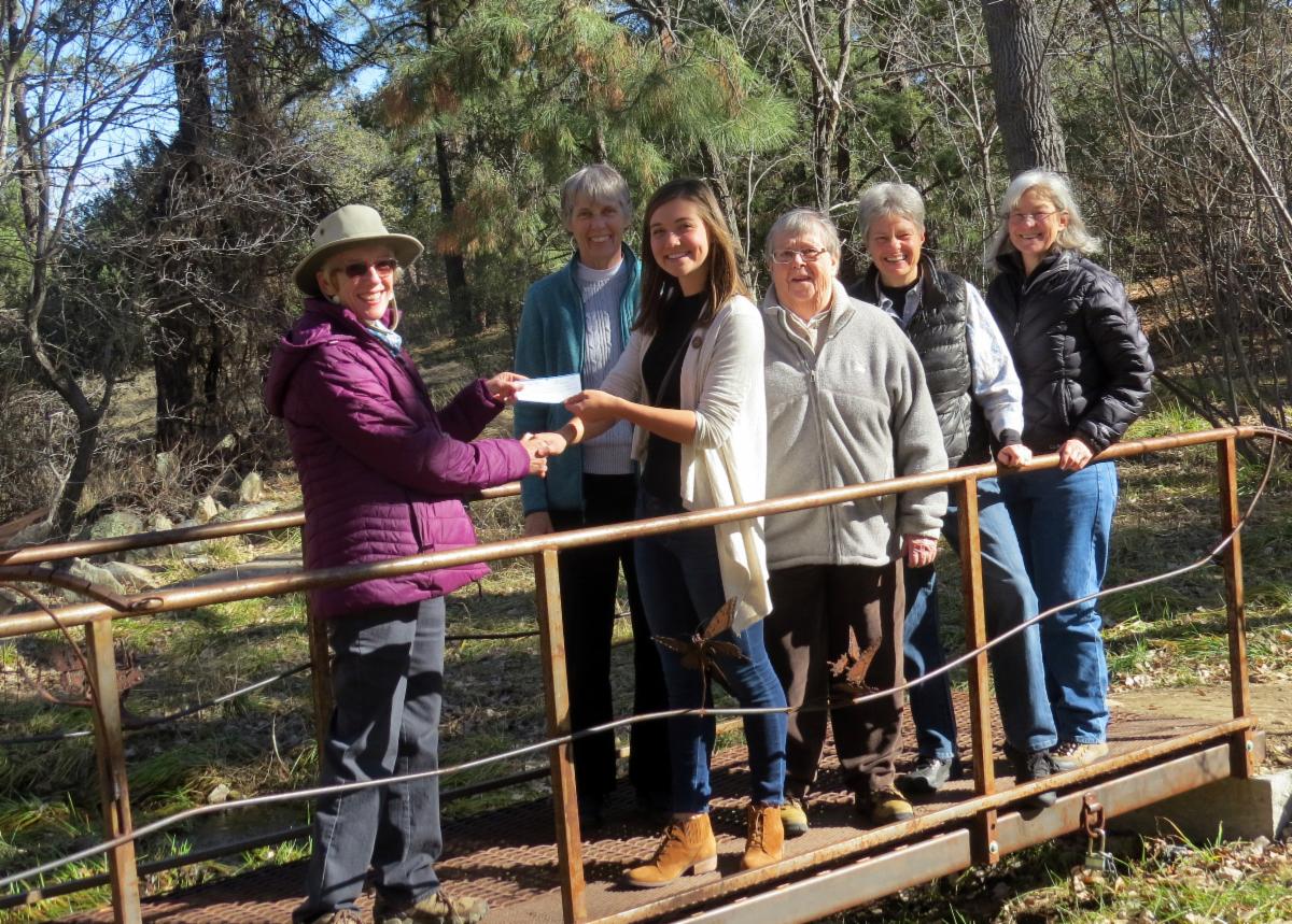 | 2019 Environmental Scholarship presentation. Left to right: Sue Drown (PAS president), Bonnie Pranter (scholarship committee), Natasha Ricio (scholarship awardee), Barb Stewart, Mary Trevor (scholarship committee), Laura Rhoden (PAS treasurer). Photo by Toni Kaus | |