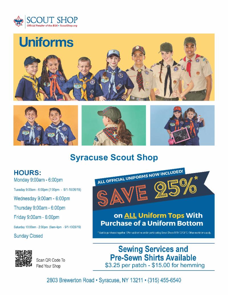 Sponsorship's available, contact Abby Hughes for more info, 315-463-0201 x104 or abby.hughes@scouting.org