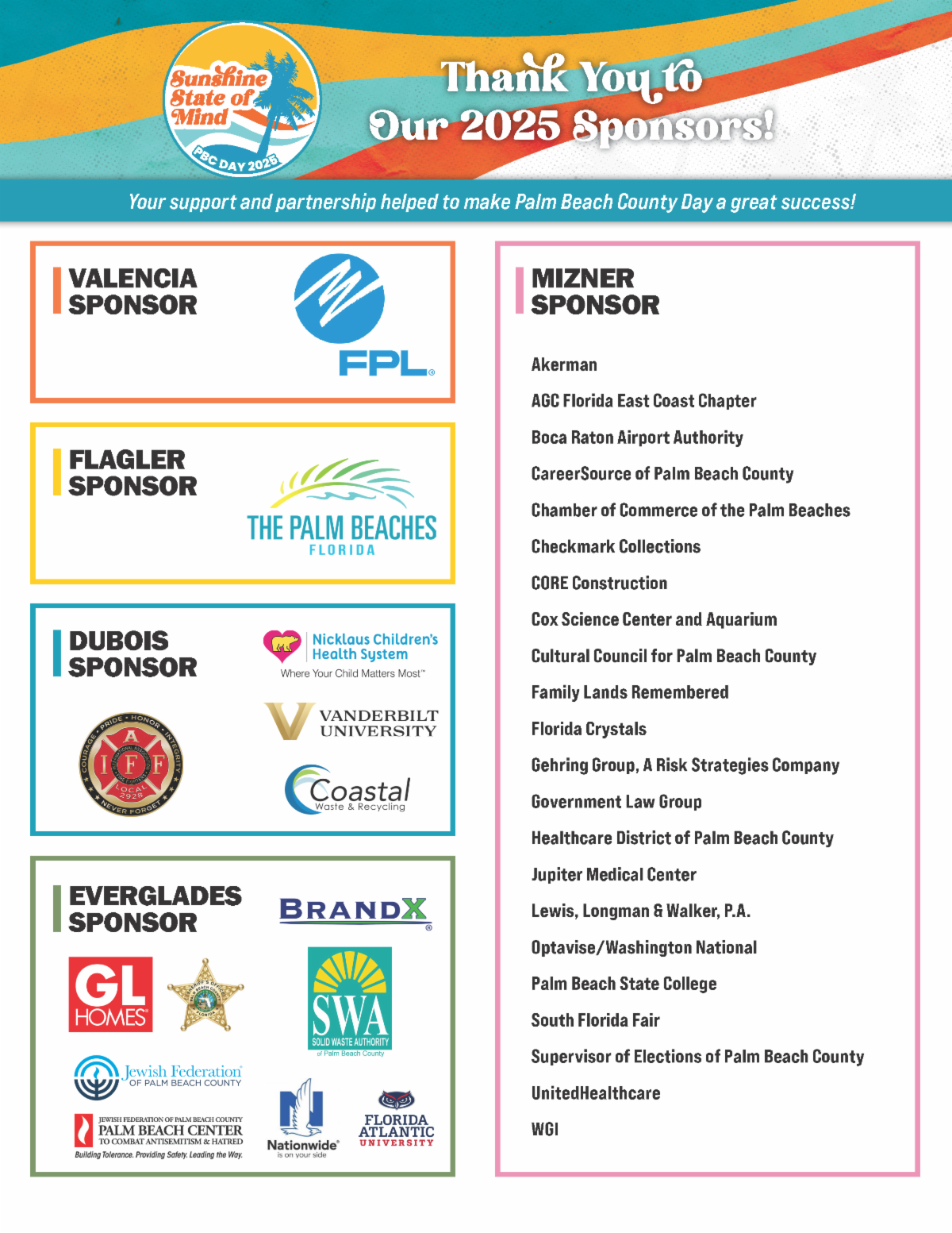 A special thank you to our sponsors who made the events happen. Also, thank you to all of our attendees. Planning for next year is underway, and we hope you will start thinking ahead about sponsoring and attending Palm Beach County Day 2026, which will take place Jan. 13-14.