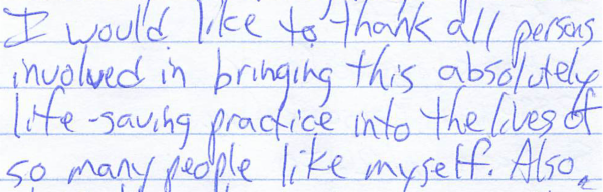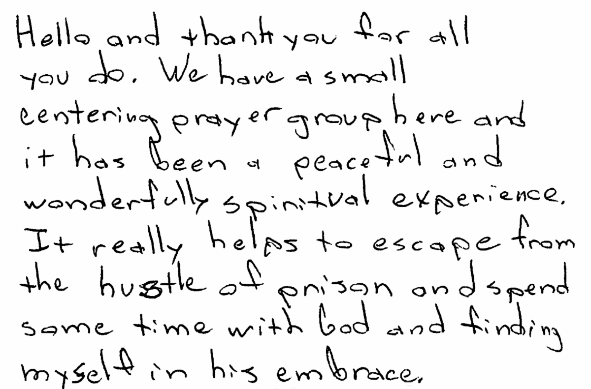During this season of gratitude and reflection, our team wants to share with you glimpses of the words and the grounded presence of at least a few powerful witnesses from within our community. May these letters, voices, and stories -- from folks who have spent time inside the walls and whose lives are being transformed, at least in part, through their practice of Centering Prayer -- inspire you, as they do me, to ever deepening gratitude.