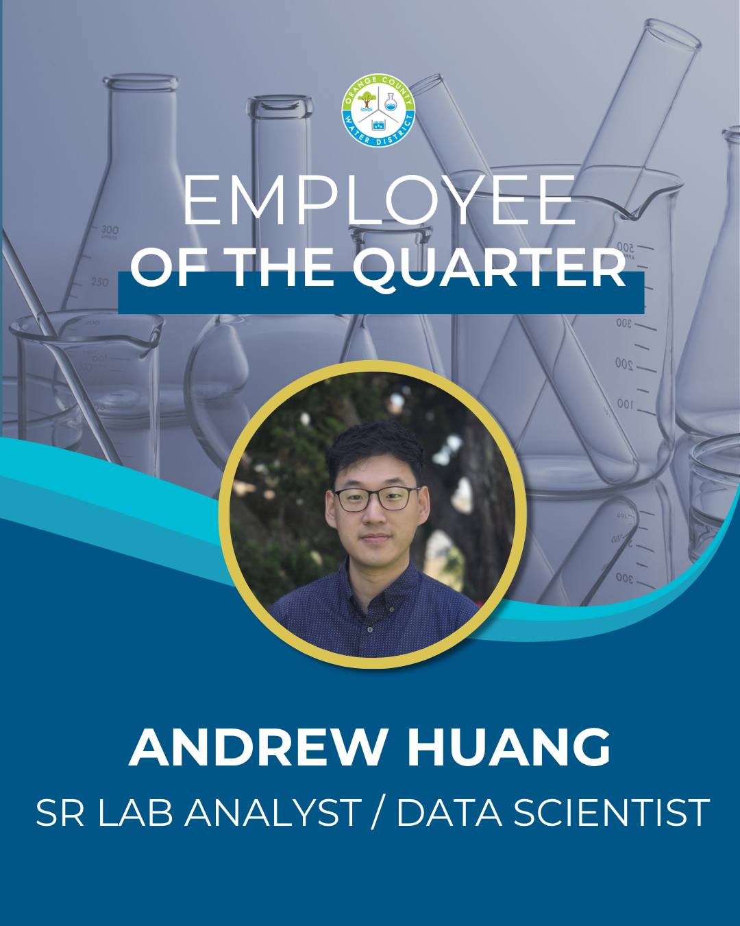 Congratulations to Andrew Huang, senior laboratory analyst/data scientist, for being named 2025 Employee of the Third Quarter! Andrew was recognized for his initiative, dedication and far-reaching contributions across the Research & Development department and the broader District. He exemplifies OCWD’s values by pairing innovation with collaboration and delivering practical results that strengthen water reliability and quality.