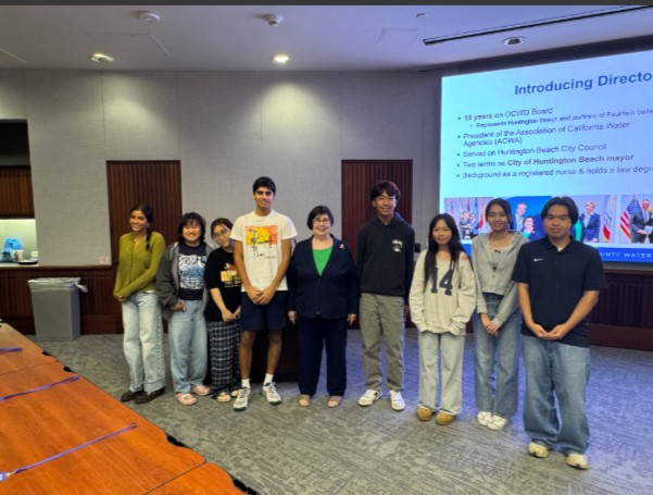 As part of Assemblymember Tri Ta’s Youth in Government Series, approximately 20 high school students toured the Groundwater Replenishment System (GWRS) and heard from OCWD Director Cathy Green, who described her path from nursing to public service and outlined ways students can engage in civic leadership and the water sector.