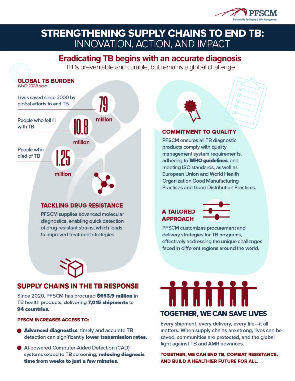 The Partnership for Supply Chain Management (PFSCM) is pleased to share our first newsletter for 2025. This edition shares some of our accomplishments from 2024 and 2025 thus far. You will find our Annual Report for 2024, coverage about our malaria and TB services, capabilities, and achievements in light of World TB Day and World Malaria Day, celebrated in March and April, respectively.