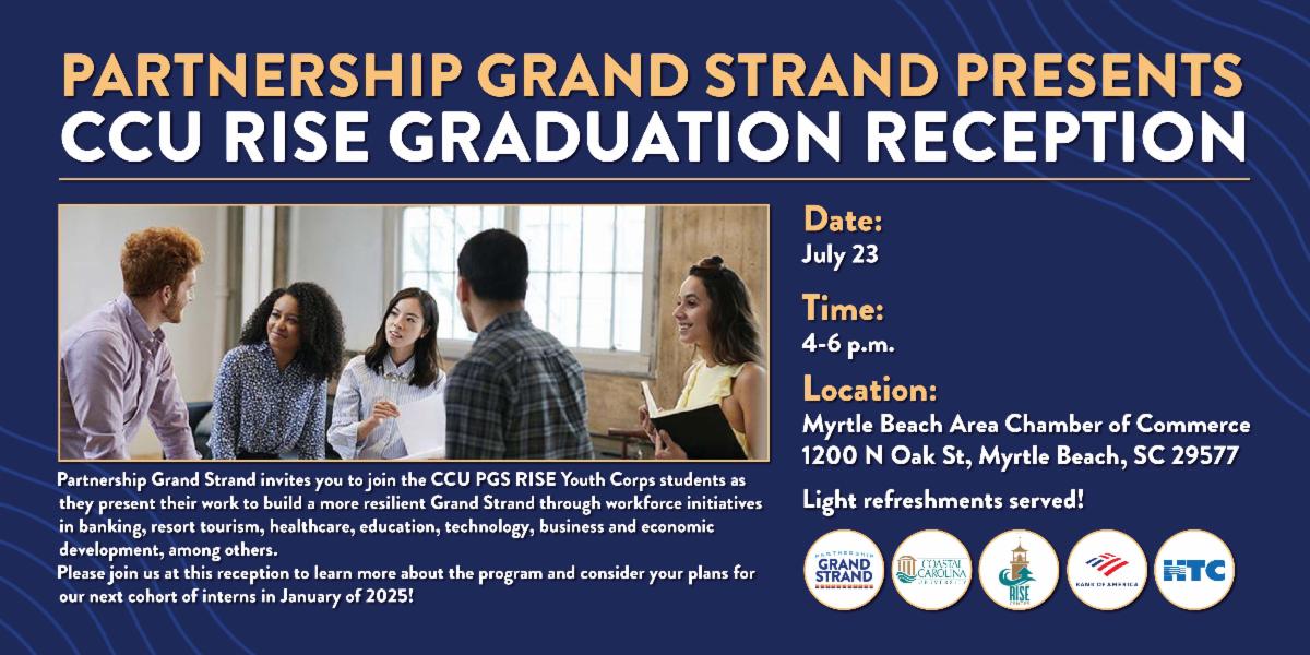 Don't miss this opportunity to meet the amazing interns from Coastal Carolina University's RISE program. You will be impressed by the caliber of these students and may want to secure your own intern for next summer. Registration for the summer of 2025 will begin at this reception.