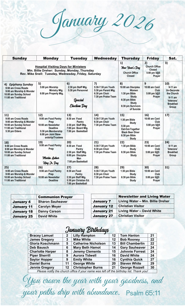For confidential prayer requests, please contact Mike or Billie directly.